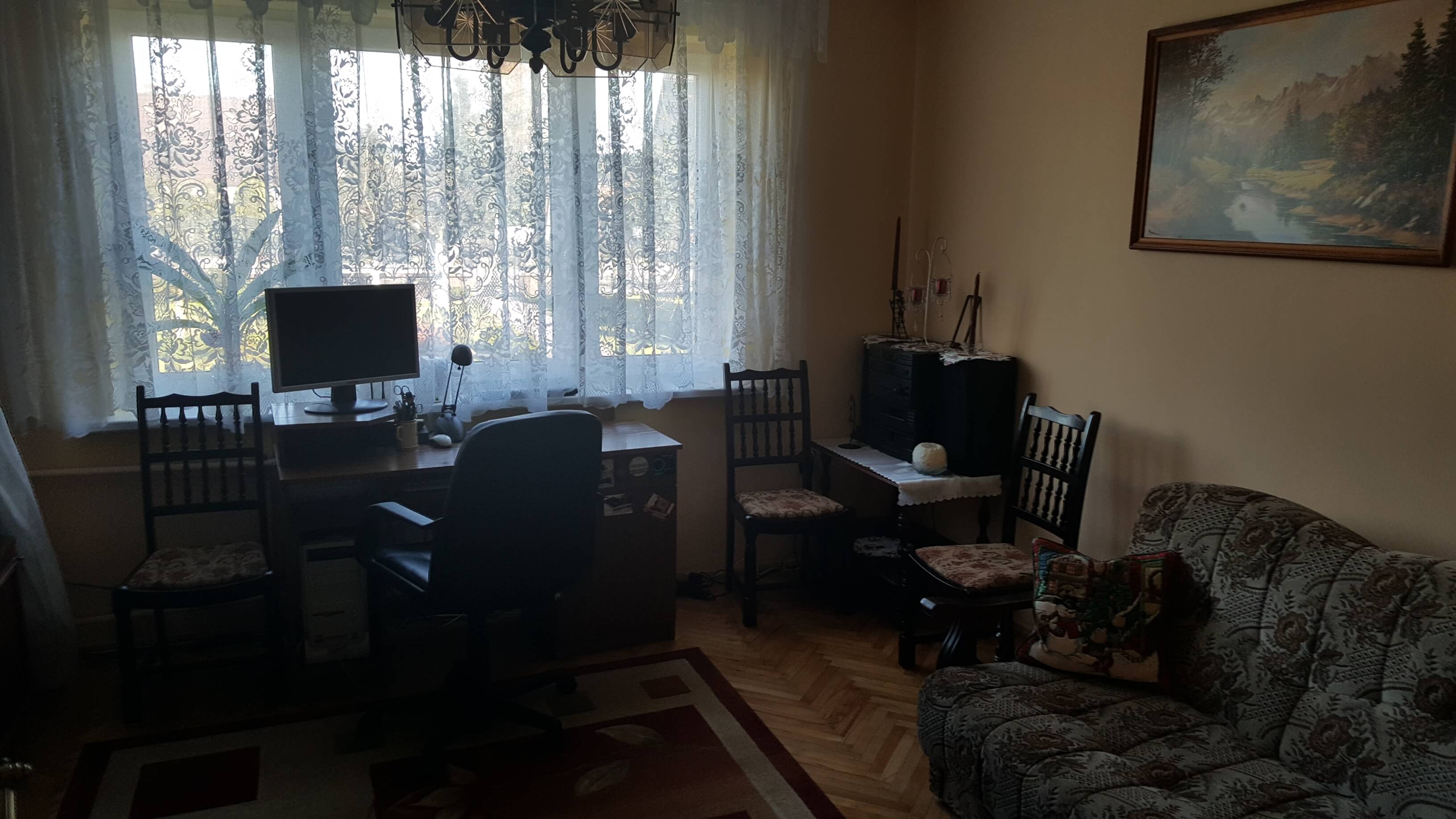 Opis domu : parter – weranda, korytarz – klatka schodowa, 3 pokoje, łazienka, kuchnia. Piętro – 3 pokoje, kuchnia, łazienka. W pokojach ściany malowane, na podłogach parkiet, dwie łazienki( w tym jedna po remoncie), kabiny prysznicowe, nowa kuchnia. Na korytarzach ściany wyłożone boazerią, zdobione pawlacze, zabudowy, na podłogach parkiet.